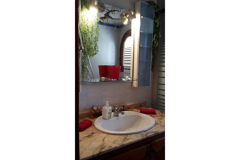 W niewidoczne, śródziemnomorskim ogrodzie wł. Staw rybny, prysznic na świeżym powietrzu, grill i tarasem słonecznym z miejscami do siedzenia i słońce możliwości zawsze można znaleźć miejsce na relaks i poczucie komfortu. Piękne wspólny basen jest mile orzeźwienie w upalne dni.