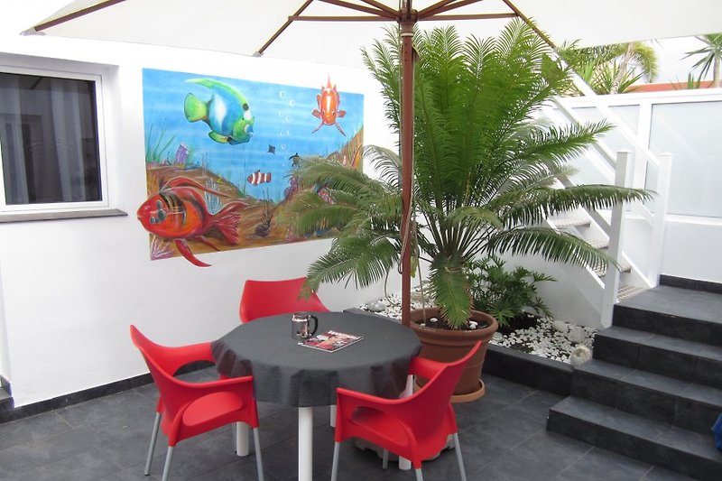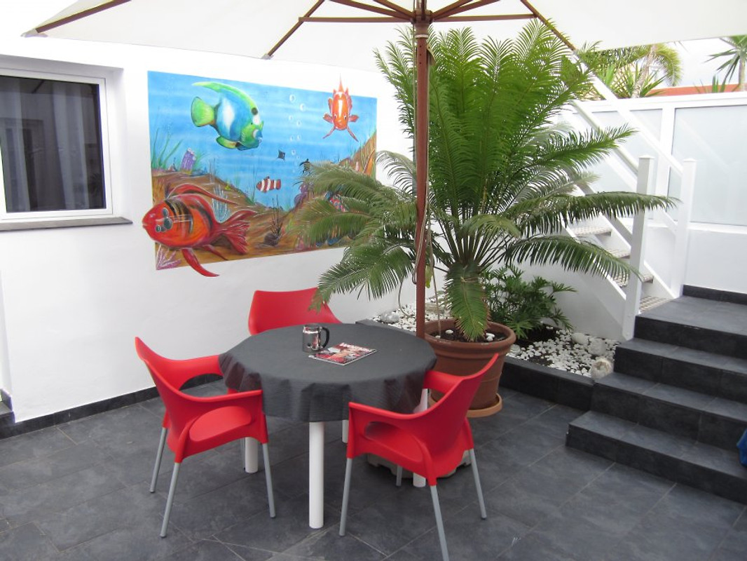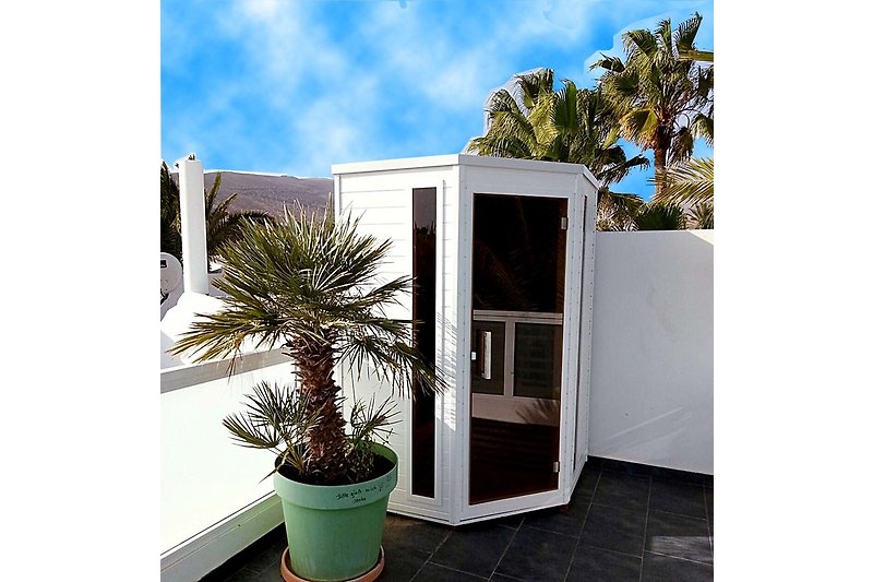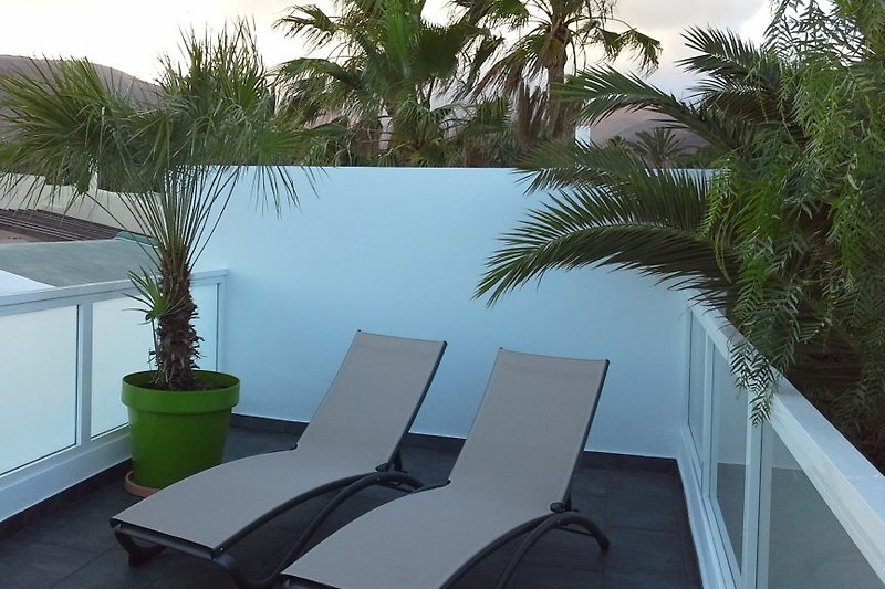 Keiner kann in die Casa hereinschauen, daher kann man inklusive Sonnenterrasse so herumlaufen, wie man möchte. Und da es auf Fuerte immer warm ist...