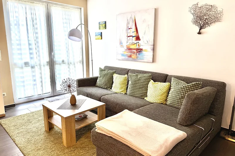 Nowocześnie urządzone mieszkanie z dwoma pokojami, kuchnią, łazienką i przestronnym salonem oferuje Państwu relaksującą atmosferę podczas urlopu.