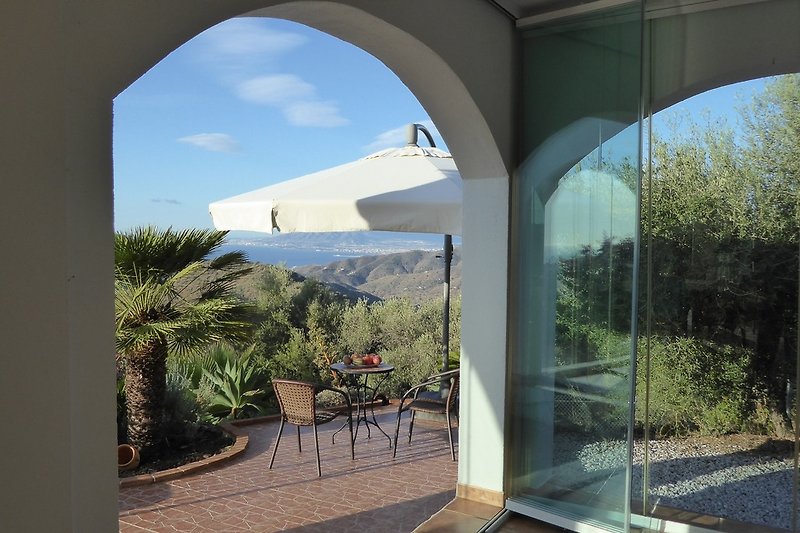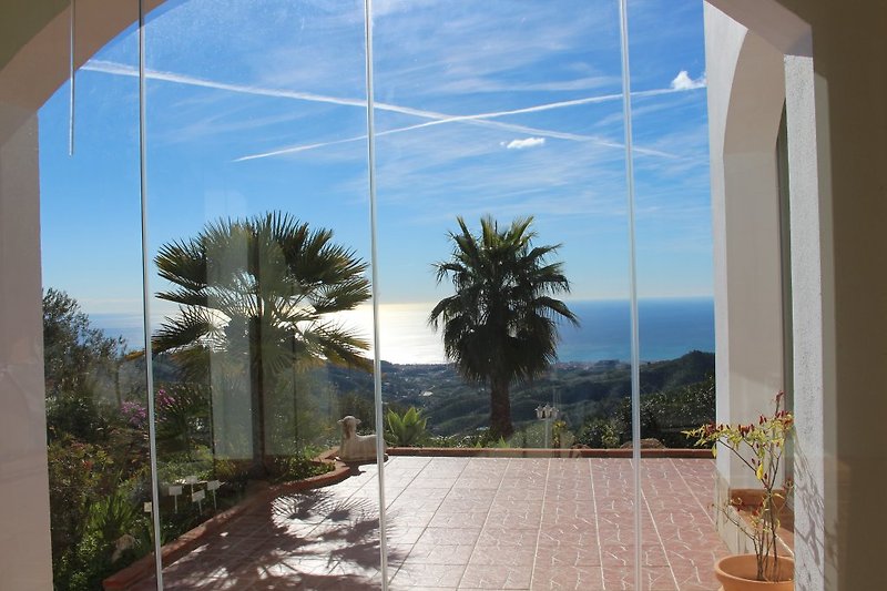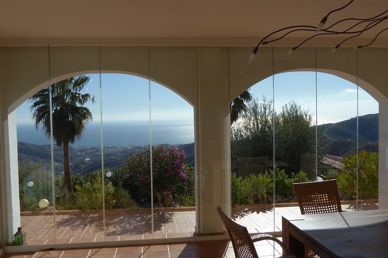 Z salonu przejście do całkowicie przeszklonej, wychodzący na południe leży 88 mkw taras. Tutaj wszystkie płyty mogą być otwarte w lecie, więc latem i zimą wrażenie siedzi na zewnątrz. Otwiera się tu fenomenalny widok na morze i góry. Wieczorem można podziwiać wspaniałe zachody słońca, a następnie obserwować migoczące światła Malaga.