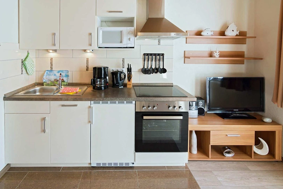 Wszystkie mieszkania zostały zmodernizowane w latach 2014 - 2018, aby spełniały aktualne standardy. Dominują jasne, przyjazne kolory i harmonijny wystrój z dużą dbałością o szczegóły. Nowe kuchnie wyposażone są w zmywarkę, płytę ceramiczną z piekarnikiem, mikrofalówkę, toster, ekspres do kawy itp. i nie pozostawiają prawie nic do życzenia. Łóżka są świeżo pościelone, dzięki czemu TWÓJ relaksujący wypoczynek może rozpocząć się już na samym początku.
